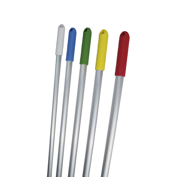 Cabo de alumínio estriado de 1,5 m. com rosca universal e punho. Ideal para uso industrial. Recomenda-se para uso com escovas industriais, escovas sanitárias e mops para lavagem. Código de cor para uso sanitario.